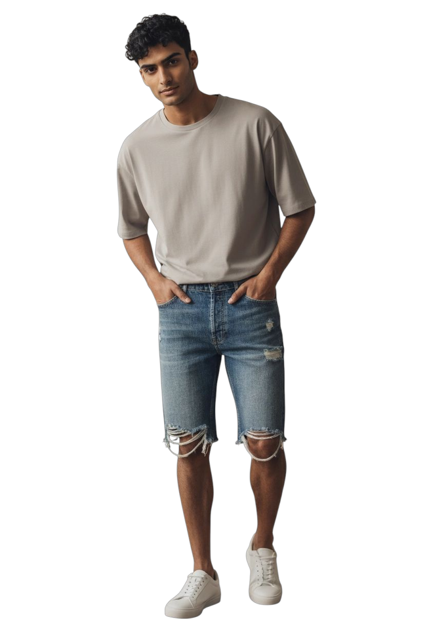 Bermuda in jeans con rotture lavaggio medio