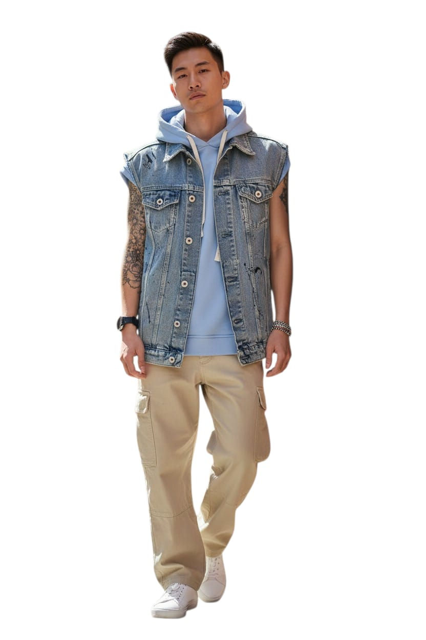 Gilet di jeans unisex con sporcature