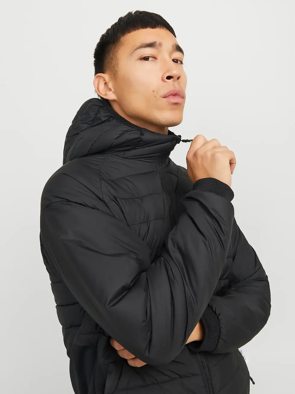 Giacchino con cappuccio con doppio tessuto nero Jack & Jones