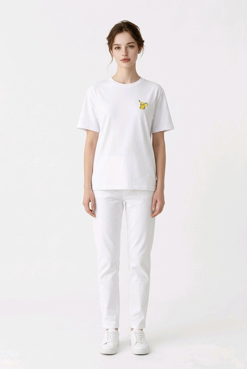 T-shirt bianca con sagome cuoricini fuxia glitter