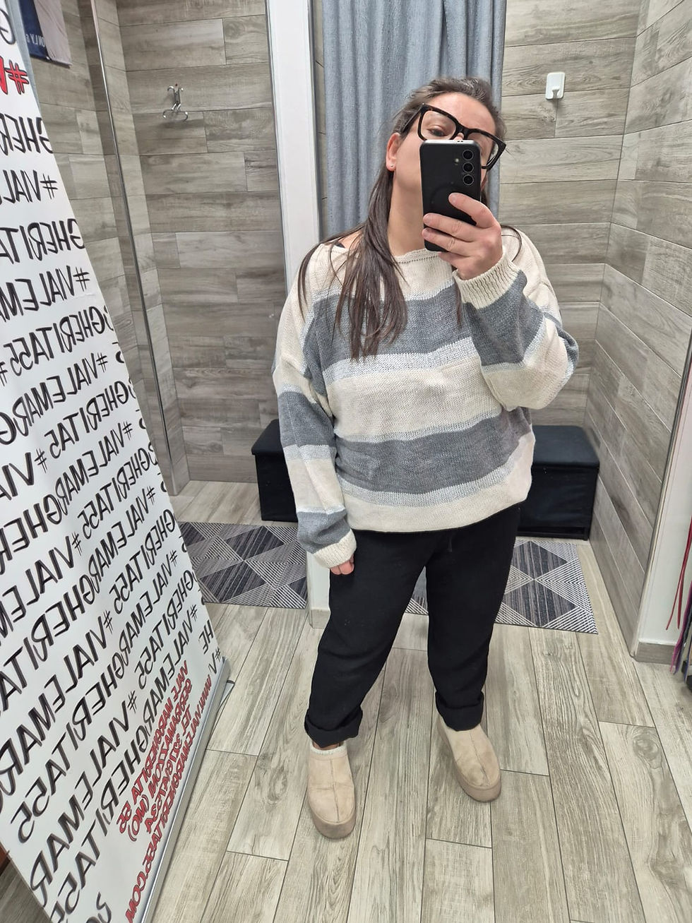 Maglione a pipistrello oversize scollo a V con filato lurez